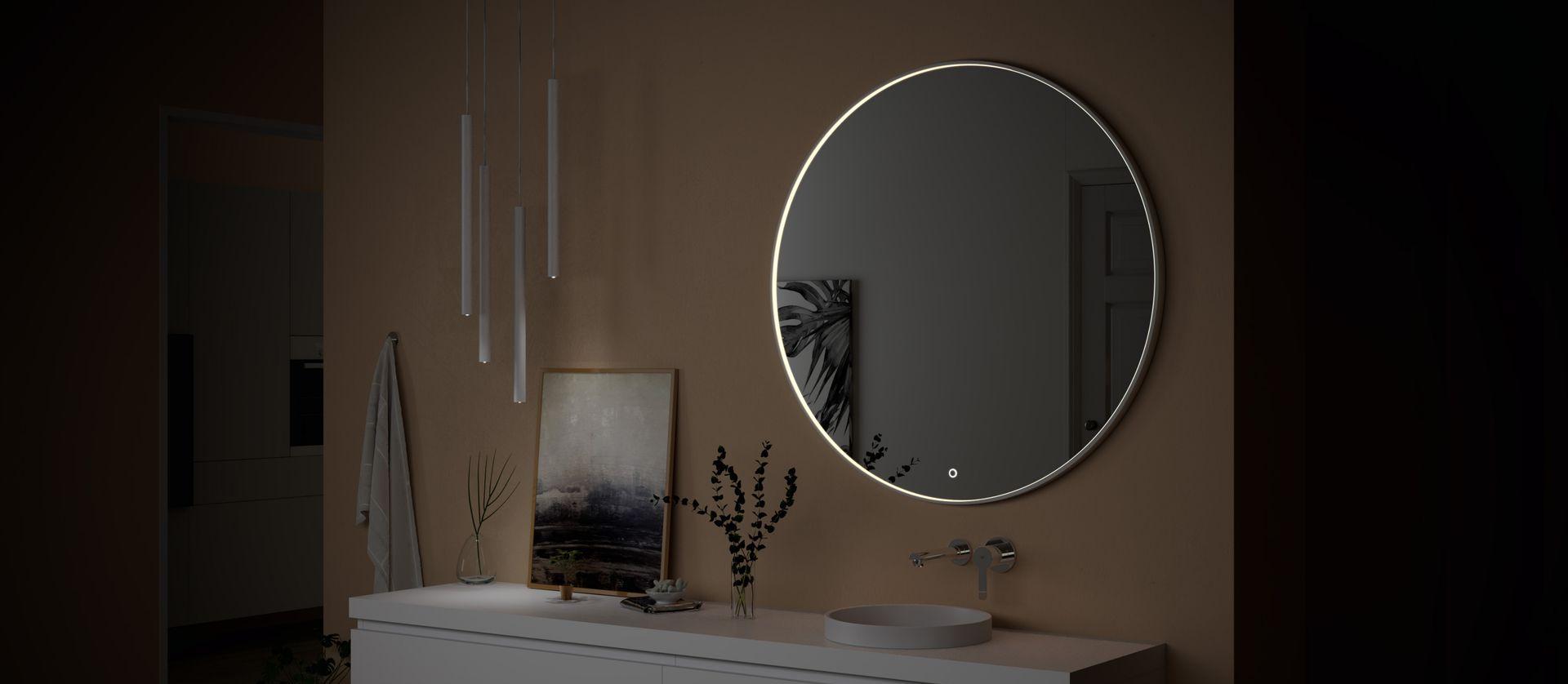Con tecnología Mirror LED: touch, luz regulable en intensidad y tono, difusor y antivaho.
