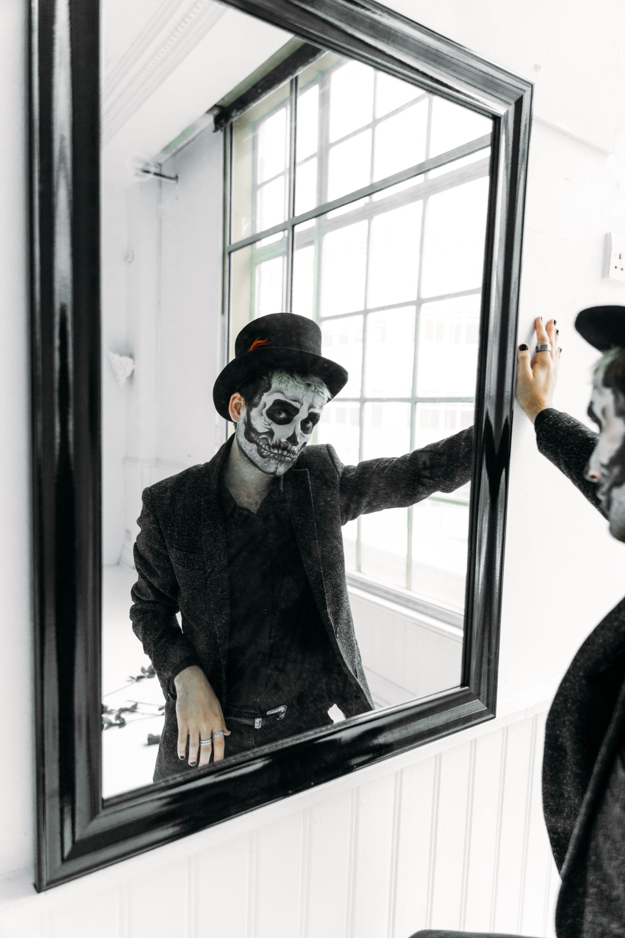10. Espejo Encantado: Ya sea con un vinilo que "refleje" un fantasma o darle un efecto envejecido y macabro con pintura especial para espejos.