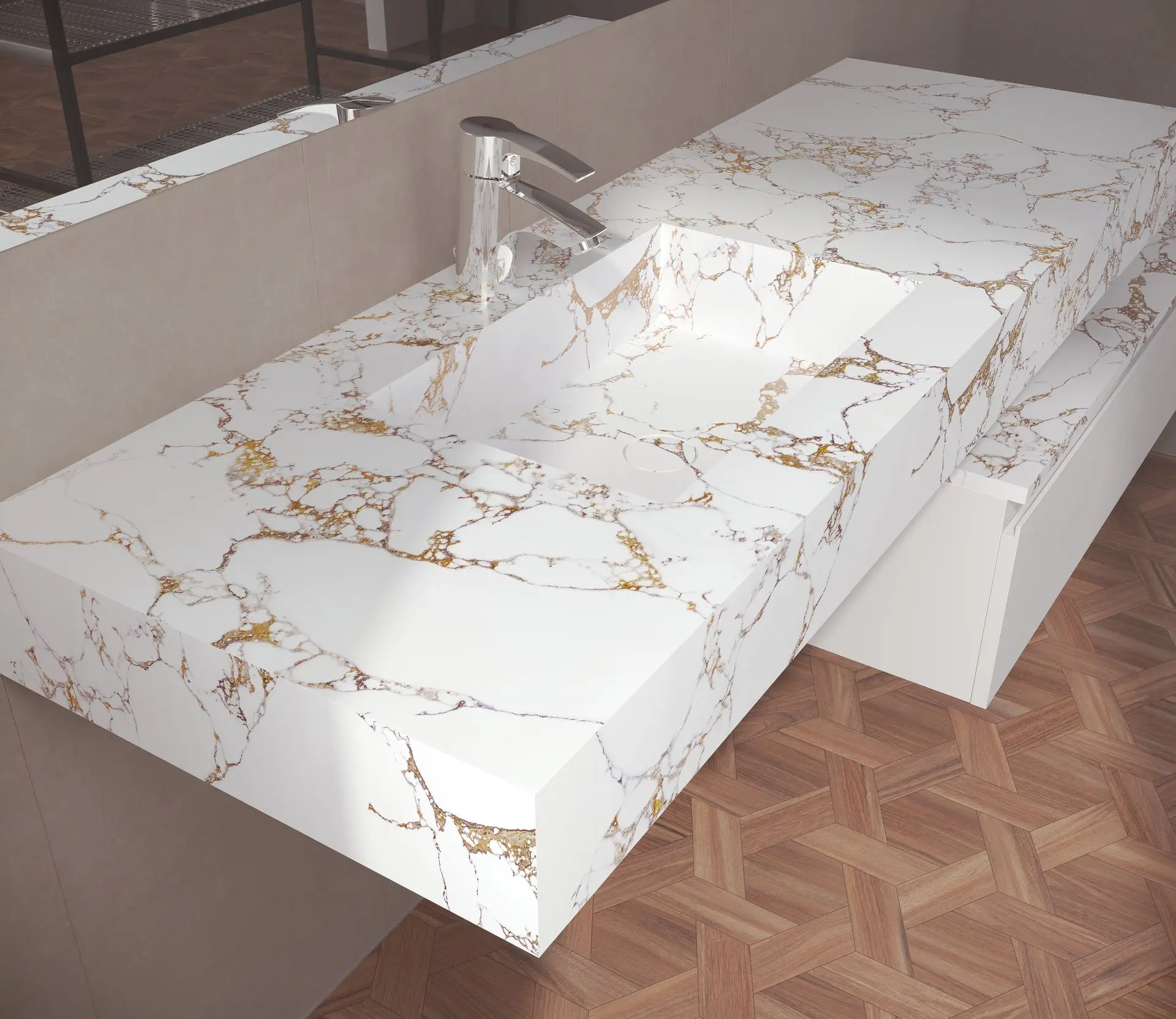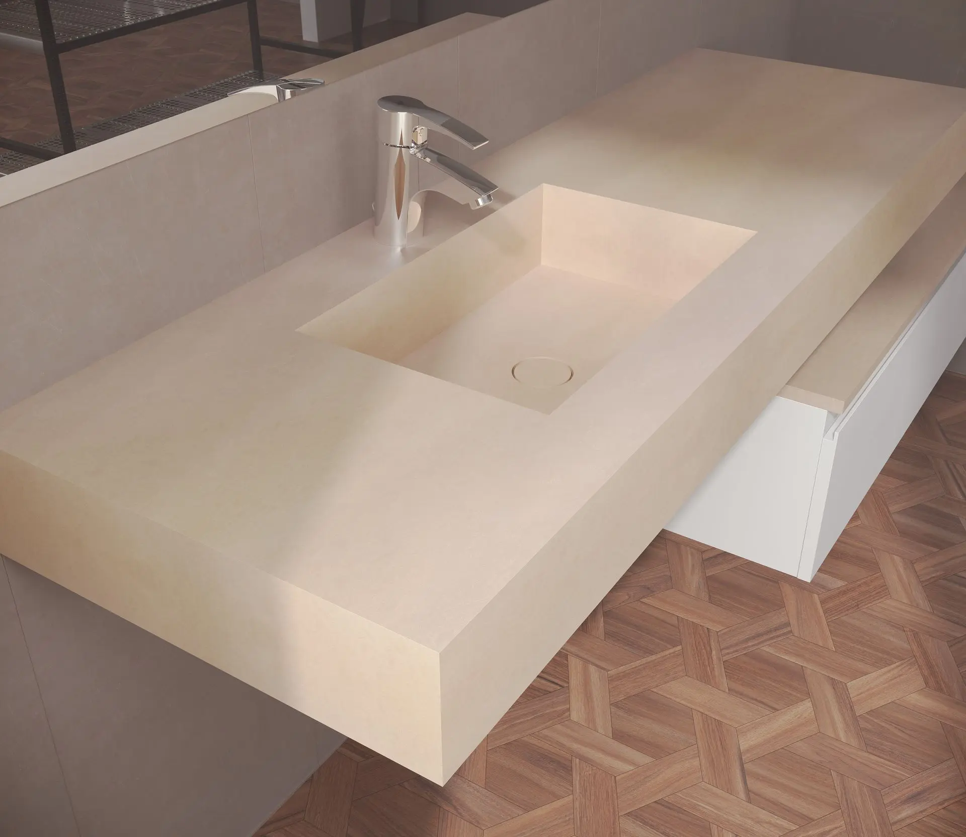 Elaboradas en piedra compacta, estas encimeras destacan por su durabilidad superior frente a otros materiales convencionales. Su resistencia a la humedad, golpes y arañazos garantiza que permanezcan en perfecto estado durante años, ofreciendo un producto de calidad inigualable para el baño moderno.