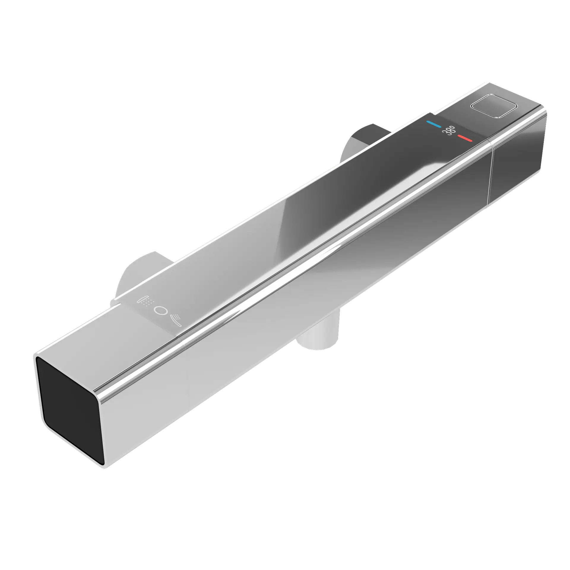 - Stop 38 ºC (en la versión Thermostatic): botón de bloqueo que limita la temperatura máxima, previniendo quemaduras accidentales y reforzando la tranquilidad en el uso diario.
