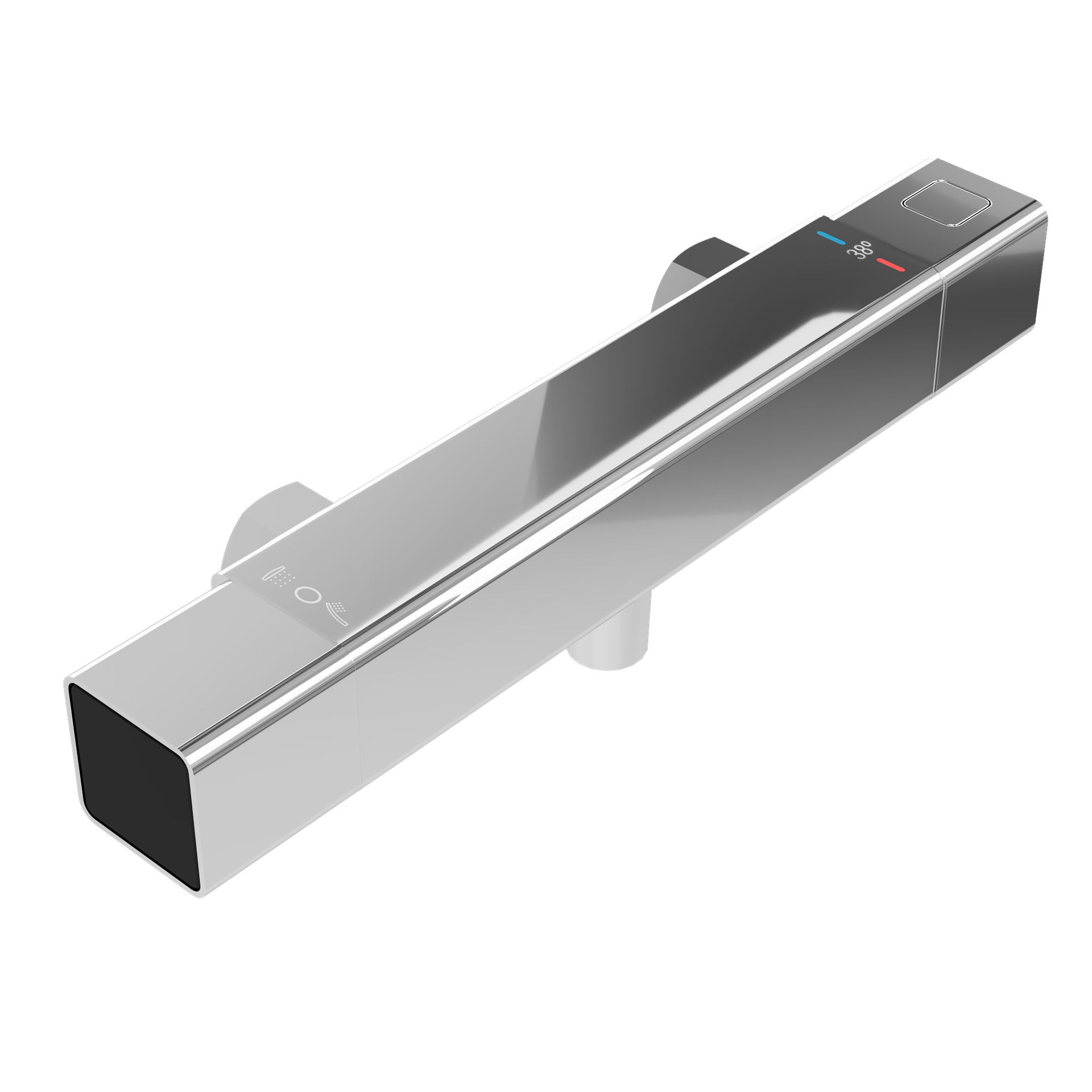 Saylo Thermostatic: incorporan un cartucho termostático de alta precisión que mantiene la temperatura constante, optimizando el confort y la seguridad. El mando derecho permite regular la temperatura por grados, mientras que el izquierdo controla el caudal de forma progresiva.