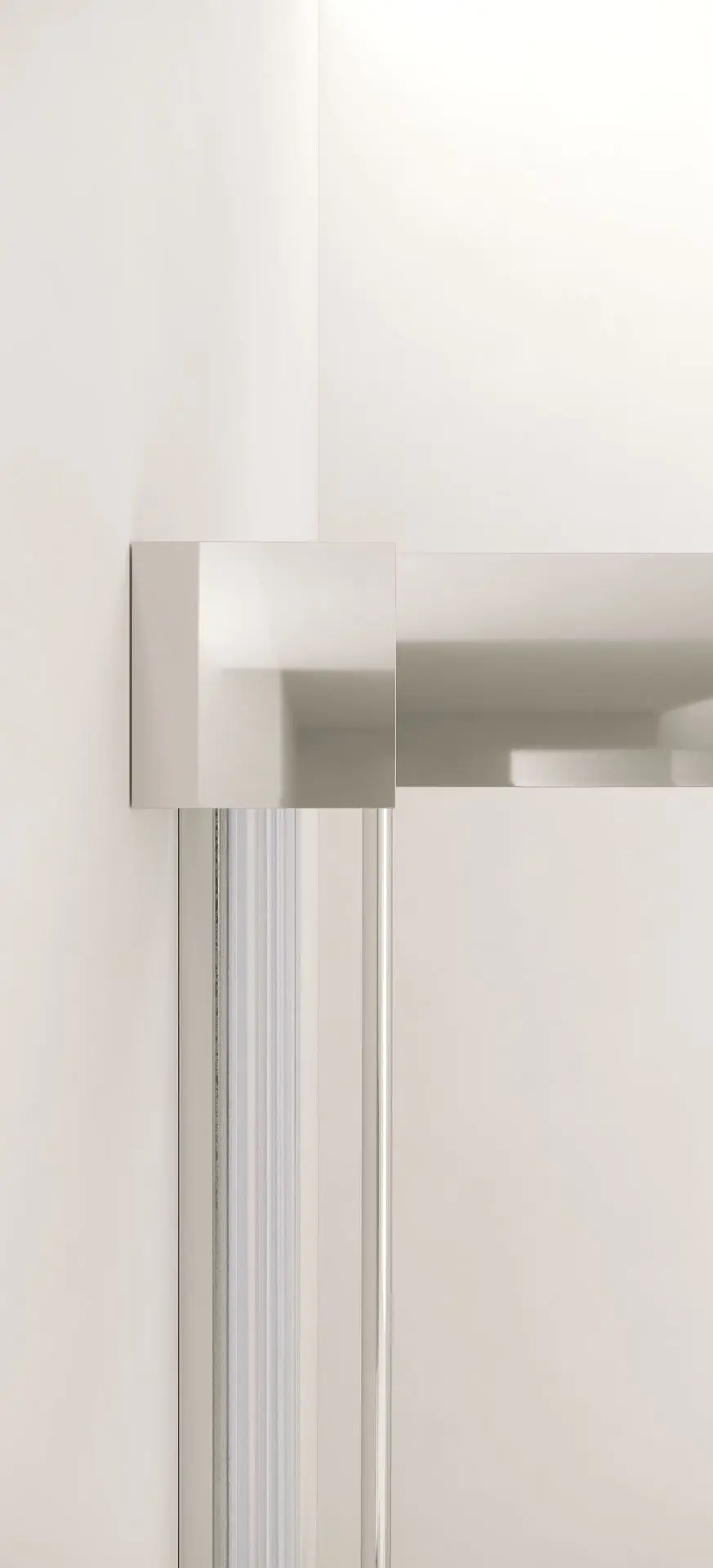 Su perfil lateral minimalista, junto con el sistema de cierre magnético, refuerzan la sensación de continuidad y pureza del vidrio, aportando una estética limpia y contemporánea.